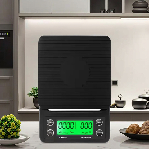 Báscula Digital para café y cocina, pantalla LCD de 3kg, ABS, con temporizador, novedad